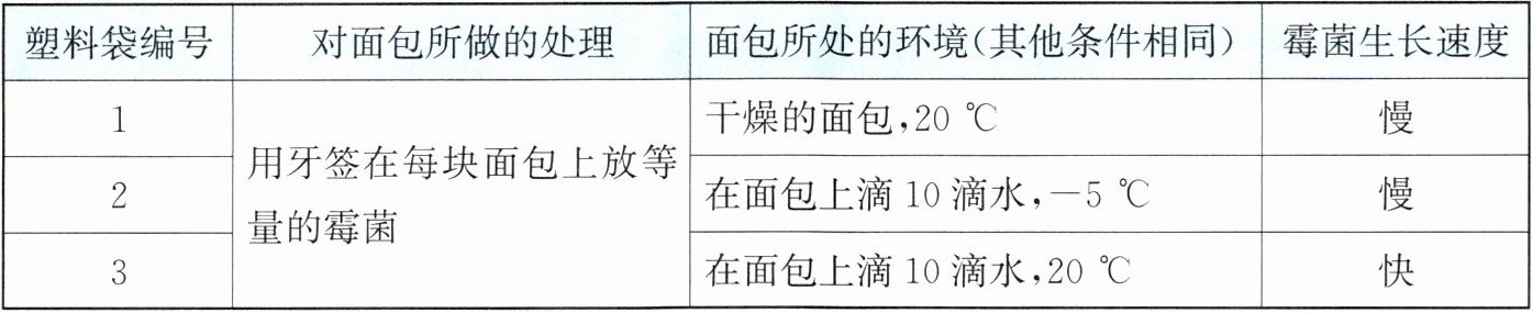 (1)如果将塑料袋1和3进行对比,可以探究______这一条件对霉菌生长速度的影响。