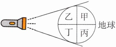 (2)在模拟实验中,用手电筒代表______,把乒乓球当作______。如图所示的四个区域中处于白天的是( )。