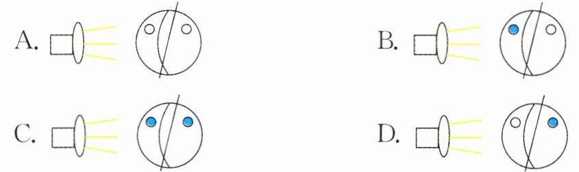 7. 下列选项中,图中小圆片的亮暗情况与实际观察结果一致的是( )。