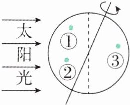 4 如图所示,三个城市中先迎来黎明的是( )。