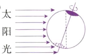 (2)如图乙所示,请将图中出现极昼现象的区域用斜线表示,图中出现极夜现象的区域涂成黑色。