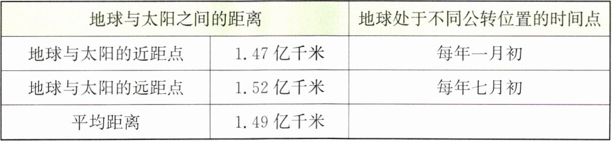 |地球与太阳之间的距离|地球处于不同公转位置的时间点|