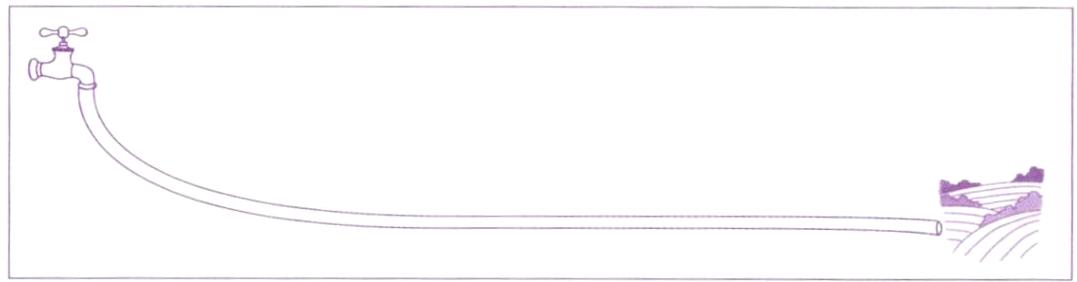 根据题干信息可知,劳动实践用田距离附近水源仅有50米,距离不远,浇水可以利用粗细适宜的水管,从自来水龙头将水引入劳动实践用田,如解图所示。