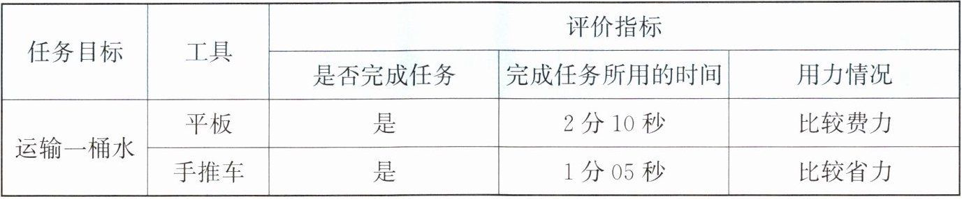 (2)经过讨论,小西和小杭决定用平板和手推车将一桶水沿直线运输相同的距离,并用秒表计时进行比较。以下是测试的记录表。