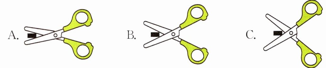 ⑥ 小明要用剪刀将一个纸箱的大小裁剪合适。下列裁剪方法中,最省力的是( )。