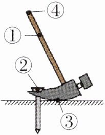 4 如图所示,小科用羊角锤撬钉子,在此过程中,羊角锤的支点是( )。