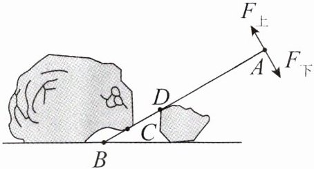 6 小杭家门口有块大石头,小杭的爸爸想把大石头移走,他找了根撬棒,发现有两种方法可以移动大石头。如图所示,向上和向下都可以用力。
