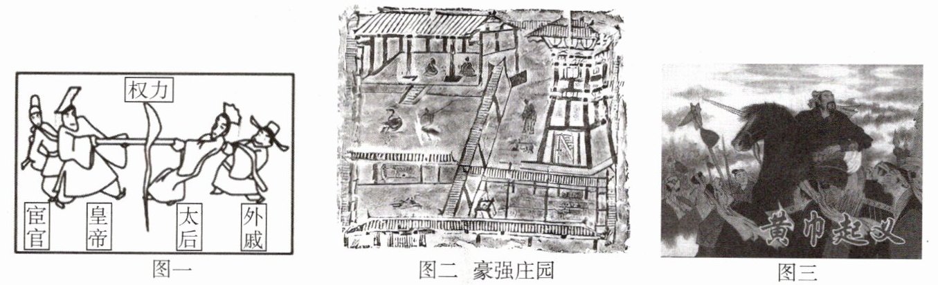 (3)材料二中图三事件对东汉统治产生了怎样的影响?简要说明材料二图片反映的事件的内在联系。(4分)
