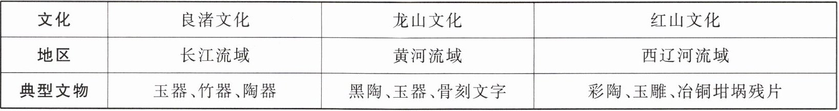 5. 据下表可知,中华文明起源的主要特征是 ( )