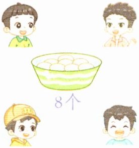 2. 新考向 地域文化 宁波汤圆香又甜,将右边碗里的宁波汤圆分给小朋友,每人分得同样多的汤圆,每人分得( )个。