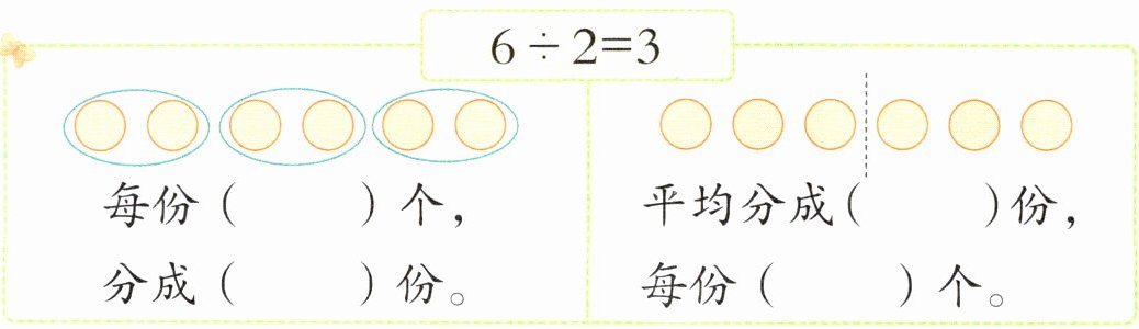 6÷2= 3 每份( )个,分成( )份。平均分成( )份,每份( )个。