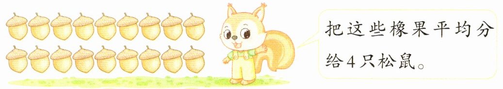 ②[点拨]一共有18个橡果,平均分给4只松鼠,每只松鼠可以分4个,最后还剩余2个,所以至少去掉2个才能正好分完。