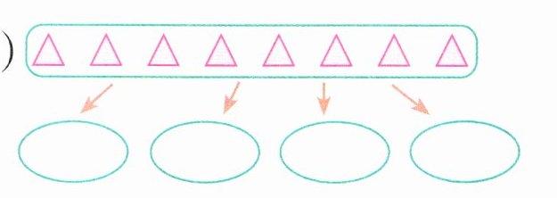 4 16÷4=4 [点拨]16颗,每4个圈一组,可以圈4组,说明16里面有4个4,用除法计算,列式是16÷4=4。(2)画一画略 2 8÷4=2[点拨]把8个△平均分成4份,每份2个,即8里面有4个2,用除法计算,列式是8÷4=2。