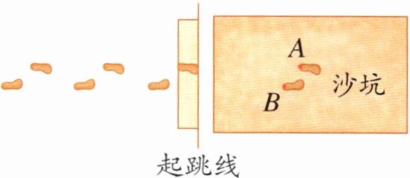 5. 如图是华华同学在运动会上跳远比赛留下的脚印。请你在图中画出测量成绩(测量成绩为起跳线到脚后跟的最短距离)时皮尺摆放的位置。