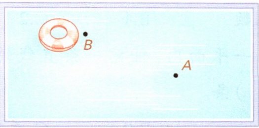 7. 【杭州市萧山区】如下图,乐乐在游泳池游泳。他现在在A点,要先游到B点拿游泳圈,然后尽快上岸。请画出他最短的游泳路线。