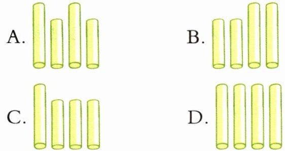 (2)下面四组小棒中,首尾相接不能围成平行四边形的是( )。