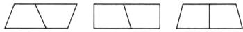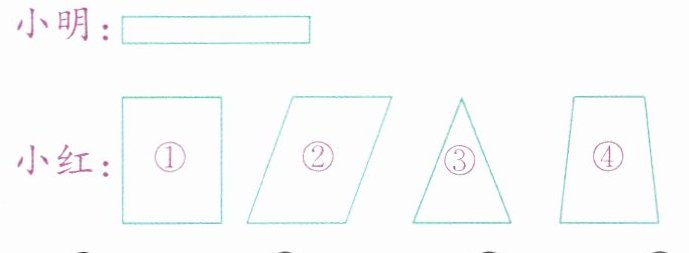 (2)【温州市】小明和小红在玩卡片游戏,小明用手中的长方形卡片和小红手中的4个图形随意重叠,让重叠部分是一个四边形。小明发现,无论如何改变摆放位置,重叠的四边形都是梯形,则小红拿出的图形是( )。