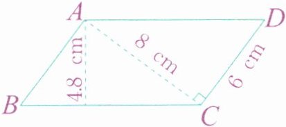 3. 如图,在平行四边形ABCD中,AC与CD互相垂直,这个平行四边形的CD边上的高是( )cm,CD对边上的高是( )cm。