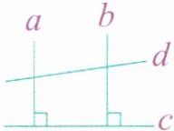 2. 【杭州市】有4条直线(如图),其中与直线c垂直的直线有( )条,与直线c相交的直线有( )条。