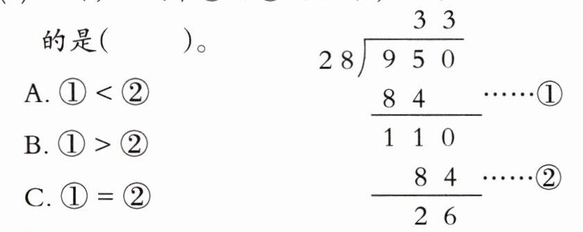 2. 一道除法竖式,如图所示,试商后发现余数比除数大,调商后正确的余数是( )。