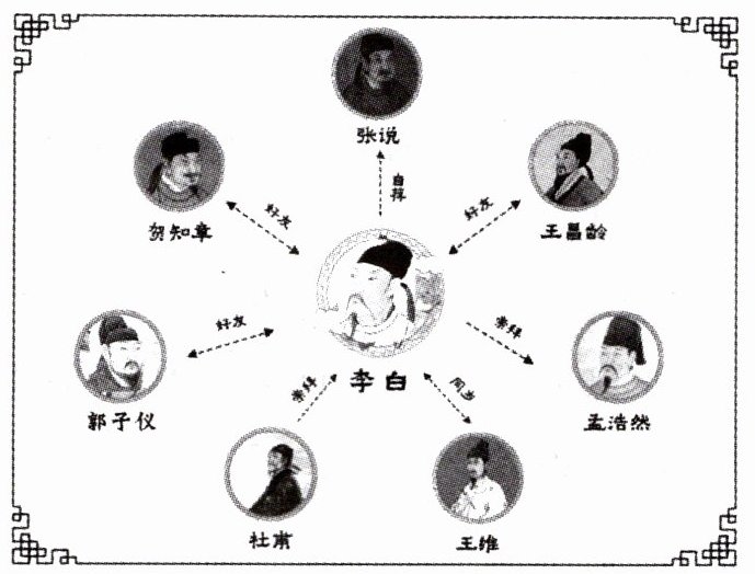 唐朝诗坛“顶流”李白的好友无数,请走进他的朋友圈,完成以下任务。