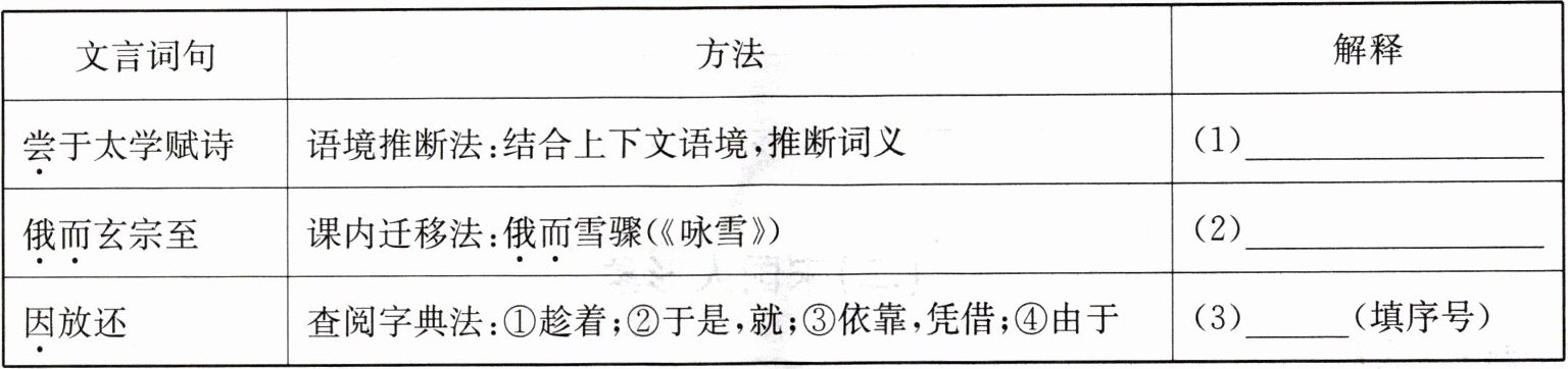 |尝于大学赋诗|语境推断法:结合上下文语境,推断词义|(1)______|