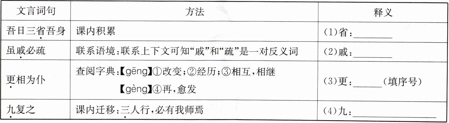 |九复之|课内迁移:三人行,必有我师焉|(4)九:______|