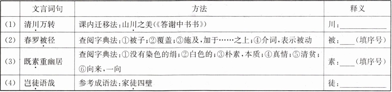 1.参考表格提示的方法,解释加点词。