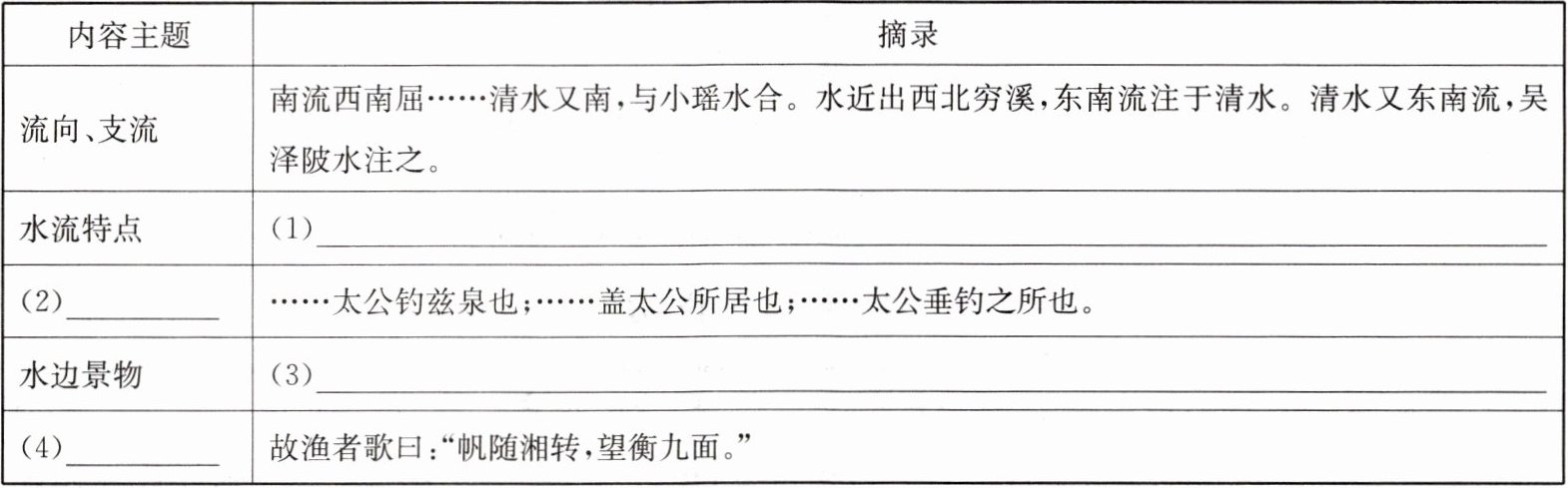 3.[提炼特点]小文准备根据上表对《水经注》的内容特点进行分析提炼,请你帮助完成。 ______ ______ ______
