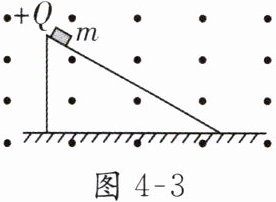 【典例 2】如图 4 - 3 所示,表面粗糙的斜面固定于地面上,并处于方向垂直纸面向外、磁感应强度为 $ B $ 的匀强磁场中。质量为 $ m $、电荷量为 $ + Q $ 的小滑块从斜面顶端由静止下滑。在滑块下滑的过程中,下列判断正确的是(