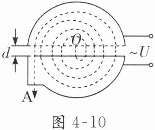 6. 如图 4 - 10,回旋加速器 $ D $ 形盒的半径为 $ R $,用来加速质量为 $ m $、电荷量为 $ q $ 的质子,质子每次经过电场区时,都恰好在电压为 $ U $ 时被加速,且电场可视为匀强电场,使质子由静止加速到能量为 $ E $ 后,由 $ A $ 孔射出。下列说法正确的是(