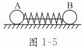 6. 如图 1 - 5 所示,光滑水平面上有大小相同的 A、B 两球,两球质量关系为$m_{B}= 2m_{A}$,A、B 两球间有一被压缩的弹簧,弹簧被细线锁定. 现烧断细线解除锁定,弹簧弹开小球,B 球获得的动量大小为$10kg\cdot m/s$,规定向右为正方向,则(