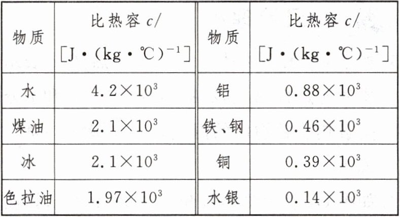 9. 下表是一些物质的比热容,由表可知: