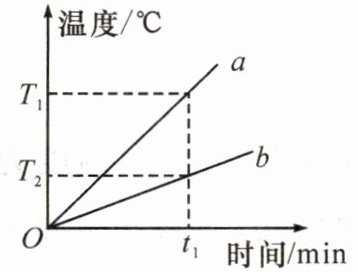 7. 质量相等、初温相同的$a$、$b$两种不同液体,分别用两个完全相同的加热器加热。加热过程中,不考虑热量损失,温度随时间变化的图像如图所示,由图像可知(