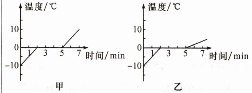 (2)如图所示是温度随时间变化的图像,假设相同时间内物质吸收的热量相同,甲、乙两图中符合冰熔化规律的是图