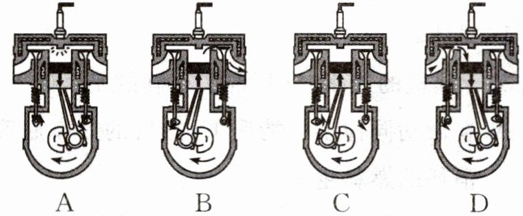 8. 2024年4月20日,我国研制的全球首款本体热效率达53.09%的柴油机正式亮相世界内燃机大会,刷新了柴油机热效率的世界纪录。如图所示柴油机的四个冲程,汽缸内气体的内能最小的是(