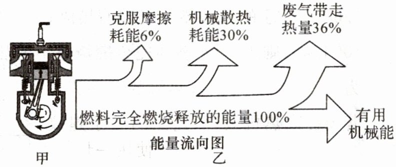 13. 【教材素材】汽车是现代生活中最常见的一种交通工具,如图甲、乙分别是某汽油机的某冲程及能量流向图。下列有关说法正确的是( )