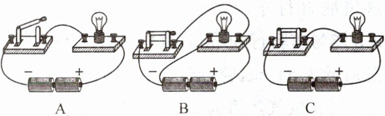 3. 如图所示的电路中,灯泡处于通路状态的是