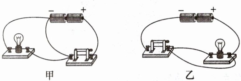 4. 图甲、乙中各有一根导线接错而使电路处于短路状态,请把这根导线找出来,在上面打一个“×”。