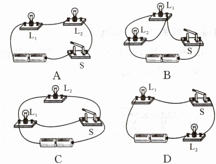 )A.闭合开关 $ S $,小灯泡 $ L_{1} $ 和 $ L_{2} $ 都能发光