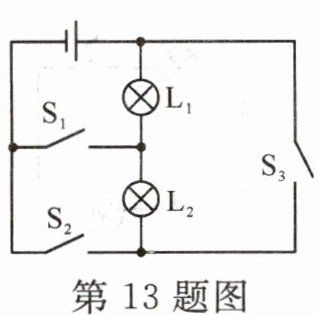 13. 如图所示,当同时闭合开关 $ S_{1} $、$ S_{2} $ 和 $ S_{3} $ 时,电路处于