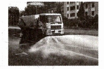 7. 为改善空气质量,打造美丽城市,我市市政环卫管理处出台城市防尘应对措施。如图,一辆在水平路面上匀速行驶的洒水车正在作业,则该洒水车的动能