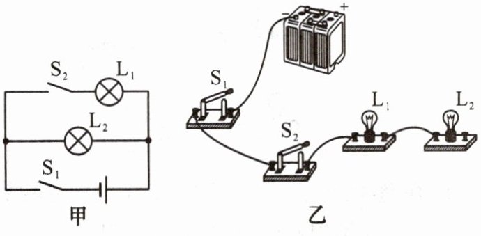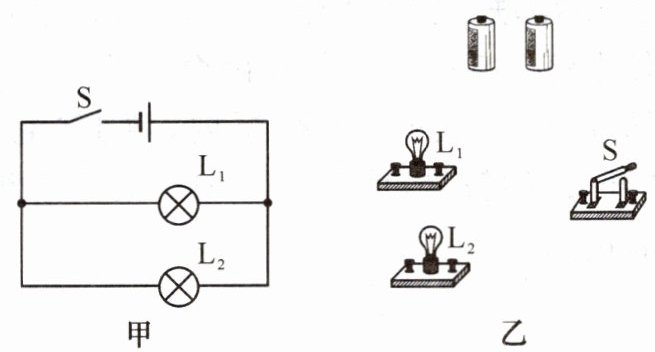 2. 请按电路图甲,用笔画线代替导线把如图乙所示的实物连起来。