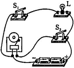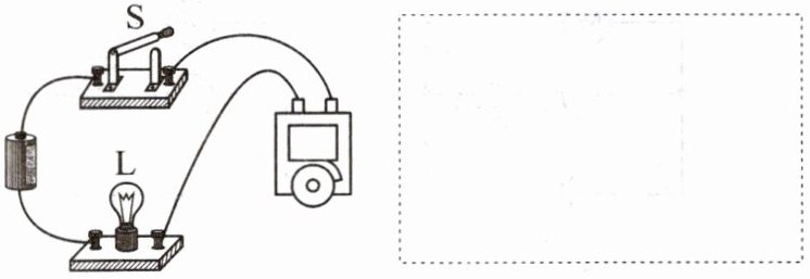 6. 根据实物图,在虚线框内画出对应的电路图。(电铃用符号“$\overset{\frown}{}$”表示)