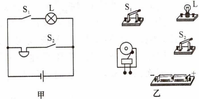 4. 根据电路图甲,请用笔画线代替导线连接实物图乙。