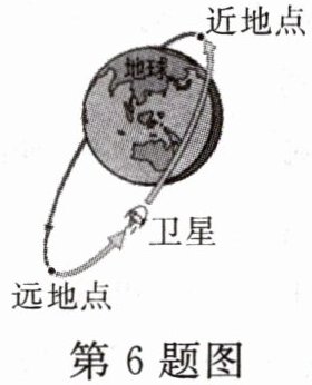 6. 如图所示,人造地球卫星沿椭圆轨道绕地球运行时,若不受空气阻力,机械能守恒,当卫星从近地点向远地点运动时,它的
