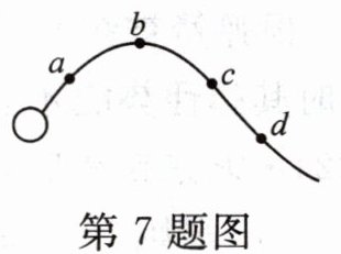 7. (2023·南充)体育课上小唐同学进行传接排球训练,他将球斜向上抛出,球的运动轨迹如图所示。a、b、c、d为轨迹上的点,其中a、c两点高度相同,不计空气阻力,则球在a点的机械能