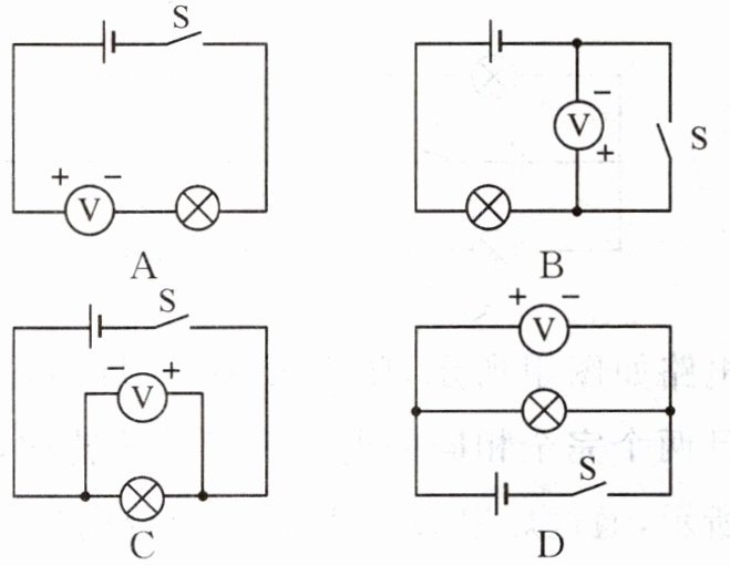 5. 在如图所示的电路中,电压表连接正确的是 (