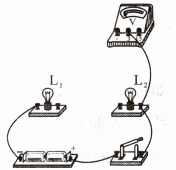 要求:两灯串联,电压表测量小灯泡L₂两端电压,导线不能交叉。