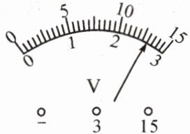 3. 如图所示的电压表,若选用的量程是0~3 V,它的分度值为